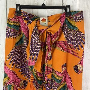Farm Rio Midi Skirt Sz L Beaded Macaws Linen Blend Tassels - New With Tags $165