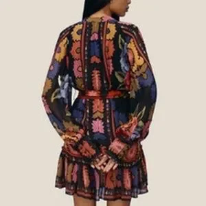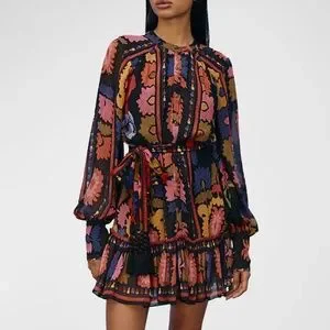 Farm Rio's minidress features a floral tapestry print with a tassel-trimmed self-tie belt.