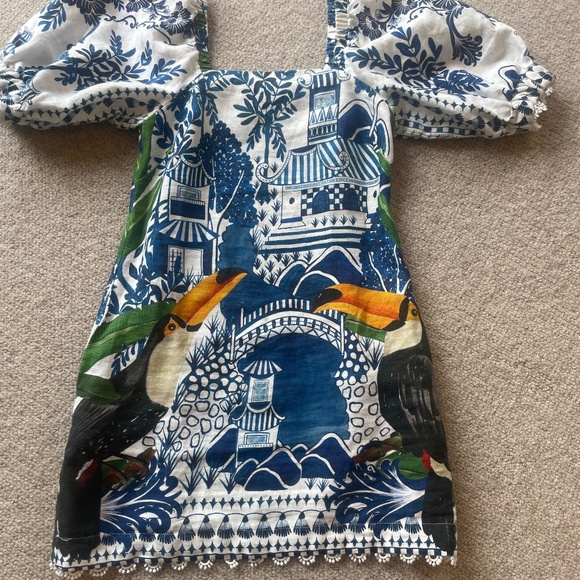 Cotton, cute, perfect condition, worn 2x. Very cute detail! Parrots! Extra small.