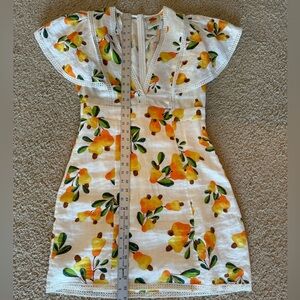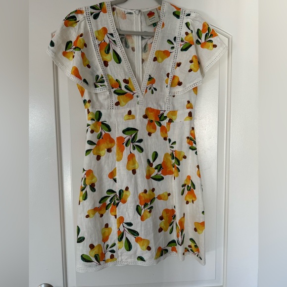 Gorgeous rare farm Rio mini dress is 100% linen, fully lined, and has beautiful detail.