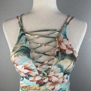 Farm Rio Mini Ruffle Sun Dress Size S P Tropical Palm Tree Lattice Front Strappy