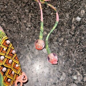 Farm Rio mixed fruit crop top. Spaghetti straps with beaded ties. Elastic hems around bodice. Size P = US S. 14” armpit to armpit. 12” side to side at base hem. Very good pre owned condition