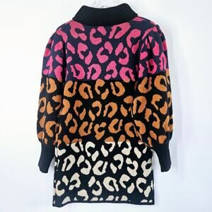 Farm Rio Mixed Leopards Striped Sweater Dress Size Small New Animal Print