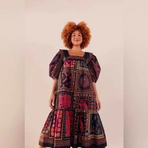 Farm Rio Mixed Scarves Frill Midi Dress size XL patchwork print flowers birds