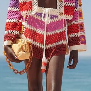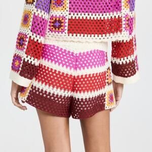 Farm Rio Mixed Stripes Crochet Knit Drawstring Shorts Multicolor Rainbow