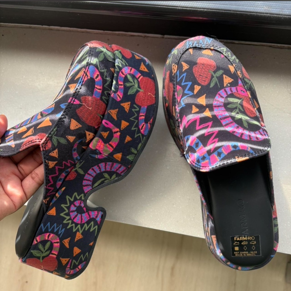 Farm Rio Black Amazon Platform Loafer Mule