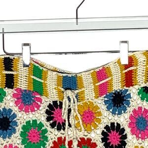 Farm Rio Multi Circles Crochet Shorts Size M Cream Cotton Floral Vibrant Boho