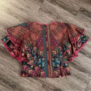 Farm Rio Multi Geometric Flutter Sleeve Blouse