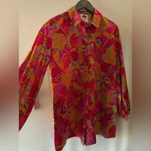 Bright floral Romper with vibrant patterns. Features a classic collar and button-up design.