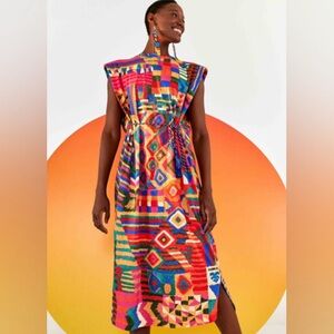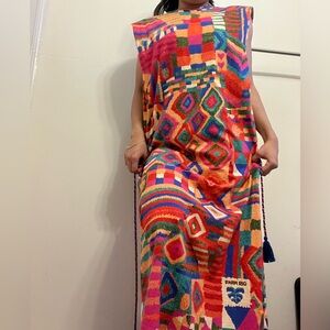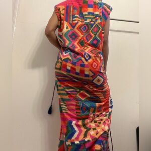 No flaws! Belt included. No side pockets. Has shoulder pads.