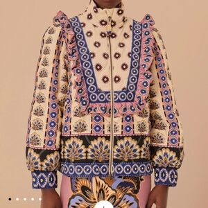 Elevate your style with the Farm Rio Multicolor Patterned Jacket. This vibrant piece features a unique design that adds a pop of color to any outfit. Perfect for making a statement.