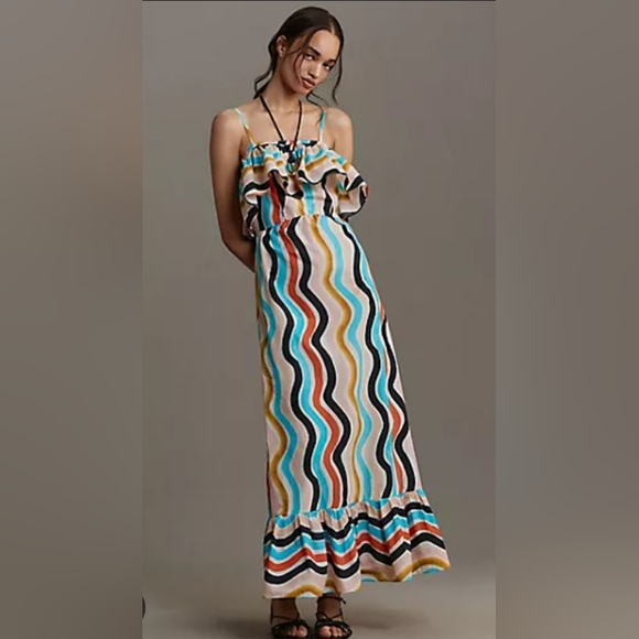 Farm Rio Multicolor Wave Pattern Maxi Dress