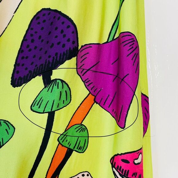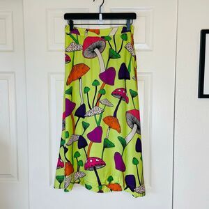 Farm Rio Colorful Mushroom Midi Skirt Neon Green Size Medium