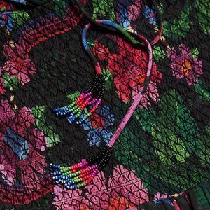 Farm Rio's Blooming Garden dress spotlights long sleeves and a smocked drop waist design. This mini-length style is complete with beaded tassels and a bright floral print. ONLY WORN ONCE ~ PRISTINE CONDITION