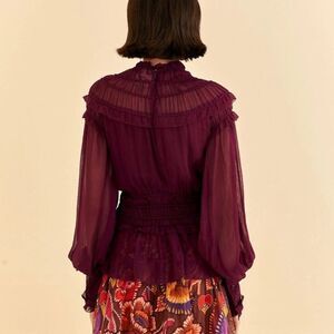 Farm Rio NWOT Burgundy Ruffle Peplum Top Sz XS