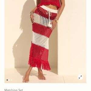 NWOT Red and White FARM Rio cotton stripped crochet skirt set