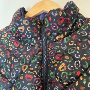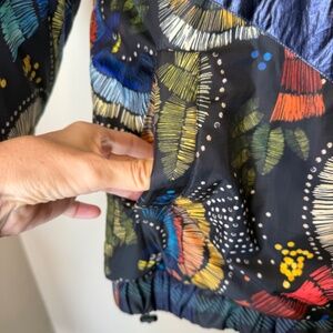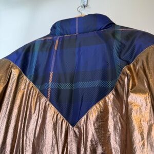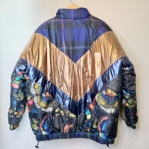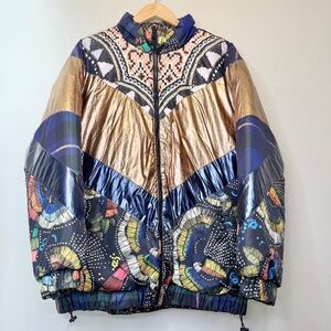 Farm Rio NWT Borogodo Reversible Quilted Metallic Patchwork Tropical Plaid Tribal Chevron Color Block Colorful Abstract Animal Print Zip Front Waist Slit Pockets High Neck Eco Vegan Friendly Oversized Puffer Coat Jacket