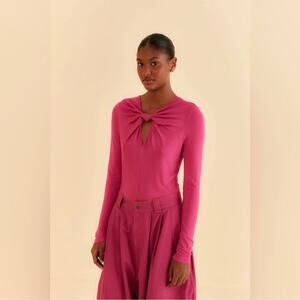 Farm Rio NWT Bright Pink Long Sleeve Bodysuit - size Large