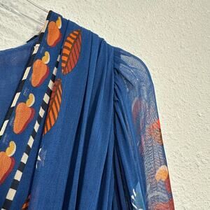 Farm Rio Nature Beauty Blouse Top Women XS Blue Floral V Neck Peplum Chiffon