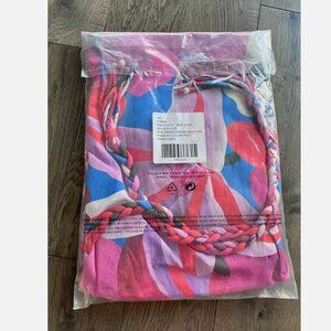 Farm Rio New Festival Color Halter Dress Size L Pink Blue Beach Sundress Braided
