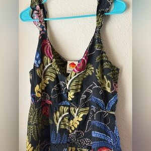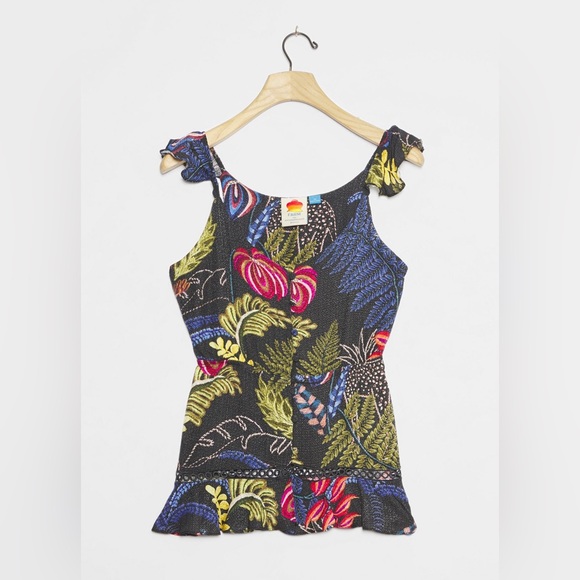 Embrace vibrant style with this tropical print sleeveless top. Perfect for adding a splash of color to your wardrobe.