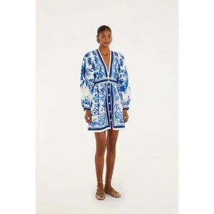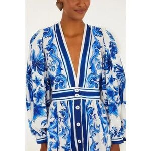 Farm Rio Off White Garden Tiles Front Button Mini Dress Size S NWT