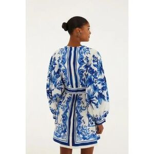 Farm Rio Off White Garden Tiles Front Button Mini Shirt Dress Printed