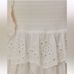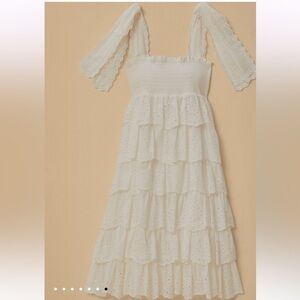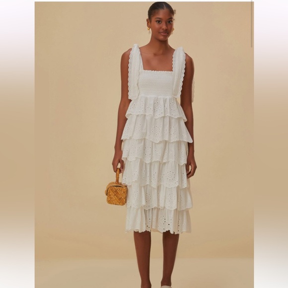 Farm Rio Off-White Embroidered Ruffle Midi Dress