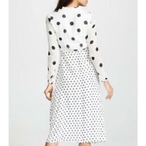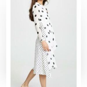 Would you like to make a statement at your next event? Look no further than this stunning, gently worn dress! Its captivating print design and expertly crafted pulled shapes on one side make for a head-turning piece. Made entirely of Viscose, this dress flatters all body types with its wrap silhouette and midi length. Plus, with a lining for added comfort and sophisticated touches like a V-neck, long sleeves with button cuffs, and a hook and eye at the waist, you'll feel confident and comfortable all night long. Dry clean only to keep it looking its best. Available in size XS, with a 44.5in / 113cm length from the shoulder, this dress is the perfect choice for any occasion!