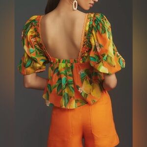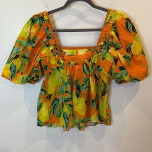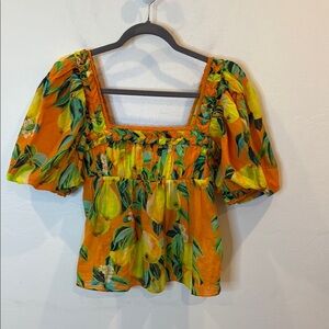 Farm Rio Orange Chic Pears Short-Sleeve Blouse Xxs pp 15.5