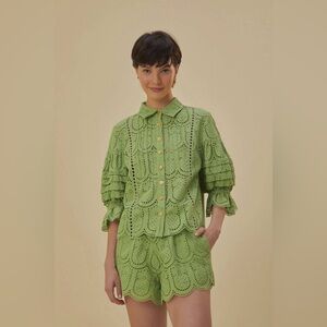 Farm Rio Pineapple Eyelet Green Shorts