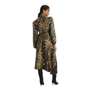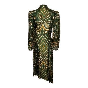 Farm Rio Pineapple Ikat Asymmetric Hem Wrap Dress Beaded Small