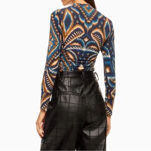 Farm Rio's Pineapple Ikat-inspired pullover blouse showcases a mock turtleneck and fitted long sleeves. Material is 85% rayon/15% elastane. This style is constructed in a stretch fabric for a slim fit. Let me know if you have any questions! Bundle and save, and please note that I reuse shipping materials whenever possible ♻️