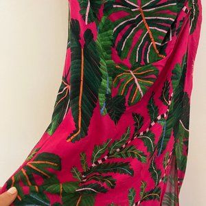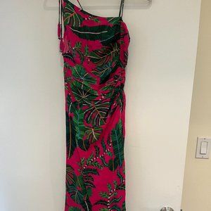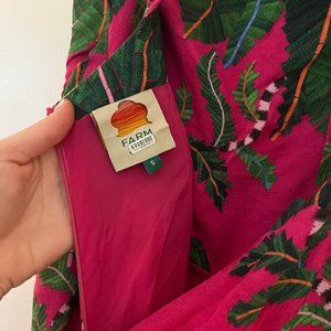 Farm Rio Pink Leaves Asymmetric Midi Dress