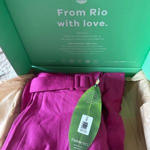 Gorgeous Farm Rio Pink Linen Pants with cuffed ankles, and a removeable waist belt. NWT, never worn, I purchased these for a specific event and ended up wearing a different option. Size small (fits like a 26 / 27)