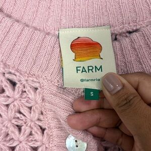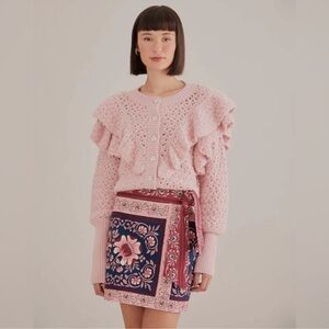 Farm Rio Pink Ruffle Knit Button-Front Sweater