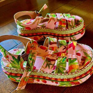 Tropical Mango Trees Espadrille Platform Sandal. NEVER WORN. BRAND NEW. Too big for me.