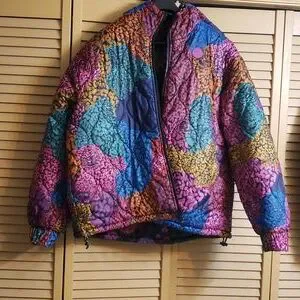 Up for grabs is a reversible down puffer that is both warm and eye catching! the one side has a mushroom print (first 3 pics) and the opposite (last 3 pictures) has a leopard print! Had this coat last year as a back up and never got around to wearing it! get a head start on next year with a very unique and comfortable puffer!! thanks for looking. open to offers