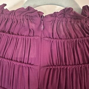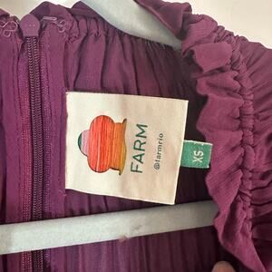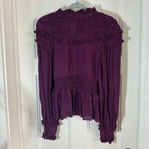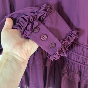 Farm Rio Purple Ruffled LongSleeve XS High Neck Smocked Bib Collar Zipper Blouse