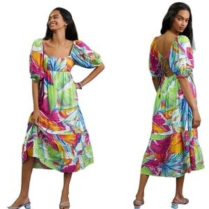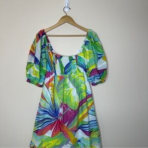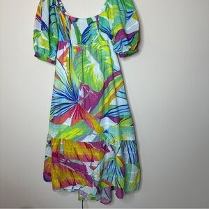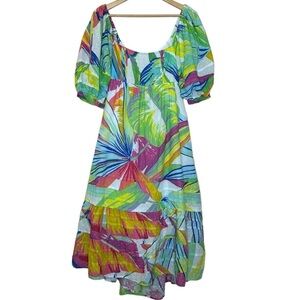 Farm Rio Rainbow Leaves Midi Dress with Pockets Size L
