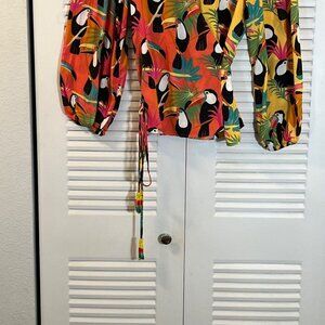 Farm Rio Rainforest Surplice Wrap Blouse Toucan Bright Long Sleeve Size Small