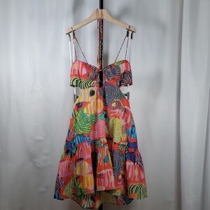 Farm Rio Red Fish Cutout printed cotton mini dress SZ L