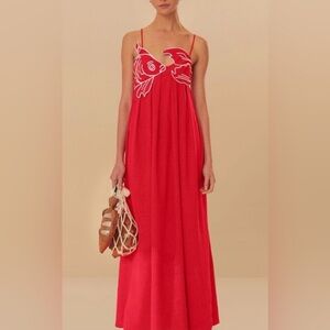 Description from Farm Rio: Embrace a splash of vibrant elegance with the red fish top lenzing™ ecovero™ euroflax™ maxi dress. This enchanting piece captures the essence of tropical charm with its asymmetrical neckline and flowing silhouette. The mesmerizing fish motif dances across responsible materials. This dress's playful patterns and unique cut offer a delightful blend of style and conscious craftsmanship, making it a true standout in any wardrobe.