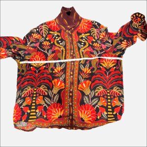 Farm Rio Red Nature Beauty Scarf Shirt (Size L)