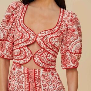 Discover the effortless charm of the Red River Ride LENZING™ ECOVERO™ Euroflax™ Mini Dress. Embraced with a sweetheart neckline, this dress blossoms in vivid red patterns, delicately intertwining floral motifs with playful shapes. The voluminous sleeves add a touch of whimsy, while the carefully crafted cutout design creates a playful silhouette. Made from responsible materials, it promises both style and conscious comfort. Let your wardrobe be a canvas.