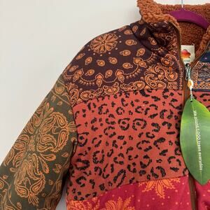 Size Small Farm Rio Reversible Patchwork Sherpa Puffer. Adjustable cinch waistline. Has a good weight and excellent quality!