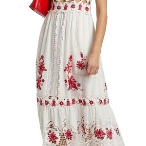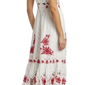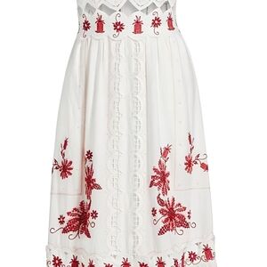 This Richelieu midi-dress from Farm Rio combines cut outs and sunflower embroidery on a luxe linen-blend canvas.Square neckSleevelessSide-seam pocketsBack zip closure55% linen/45% viscoseLining: 100% viscoseHand washImportedSIZE & FITModel measurements: 5'10" tallModel is wearing a US size Small