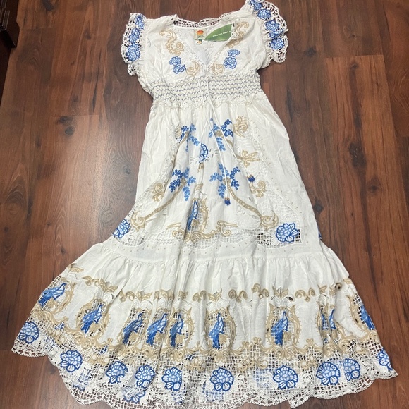 Farm Rio Romantic Richelieu Off-White Maxi Dress XL