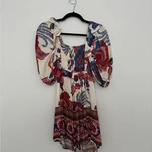 Farm Rio romper in a gorgeous pattern. Size “P”, equivalent to a small. Purchased in Brazil while on vacation straight from the Farm Rio store. Only worn a few times, in great condition. No flaws.