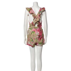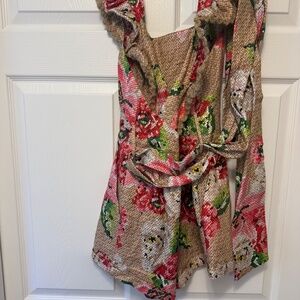 Never been worn small Farm Rio woven floral crossed back frilled romper.